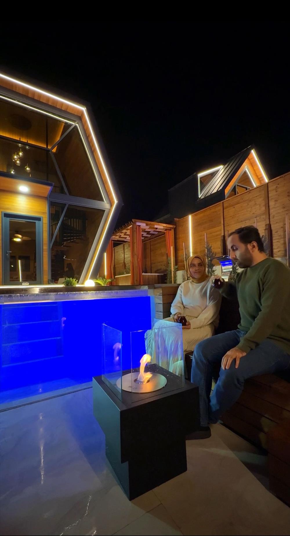 Özel ateş çukuru alanında kokusuz ve dumansız ateş yakma alanı mevcut.