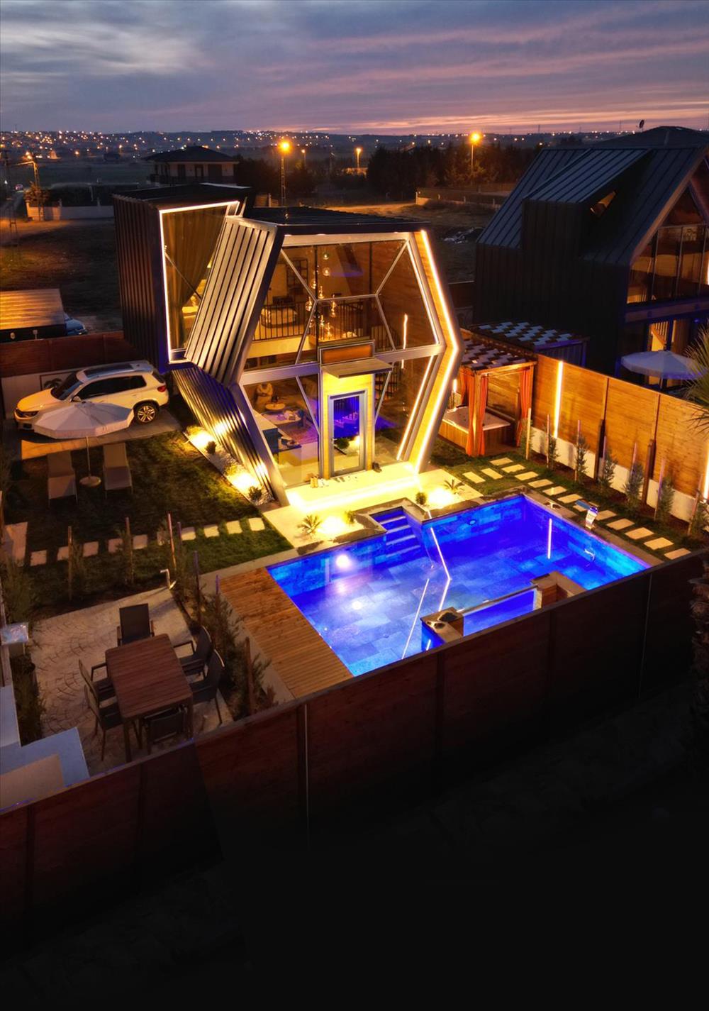 Aynı tesise ait 2 adet Petek bungalov (Altıgen) 6 Adet üçgen bungalov bulunmaktadır.