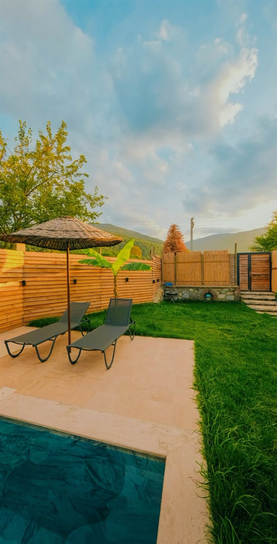 Aynı işletmeye ait yan yana, hemen hemen aynı konseptlerde 2. bir evi daha bulunmaktadır. Diğer evimizin jakuzisi evin bahçesinde, ek olarak şömineli ve havuzu 3x5 metre boyutlarındadır. Görmek için TIKLAYIN..